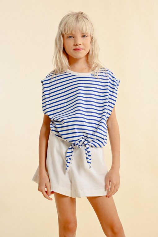 MOLLY BRACKEN Women’s Molly Bracken Long-sleeved Knit Sweater, Sailor Top | Offwhite & Navy Blue