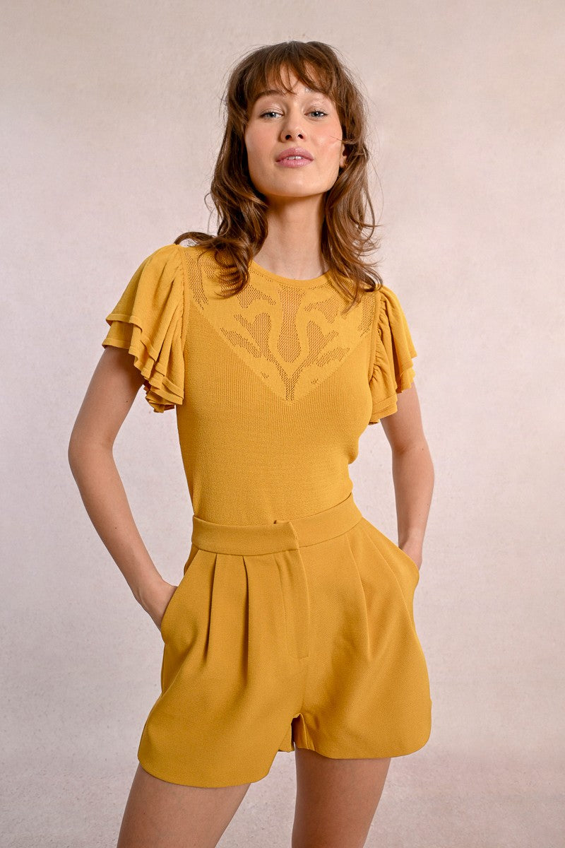 -Ruffled sleeves
