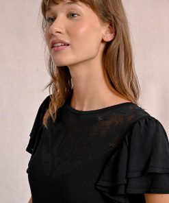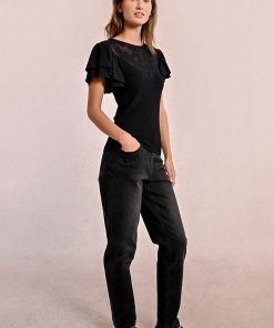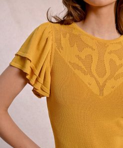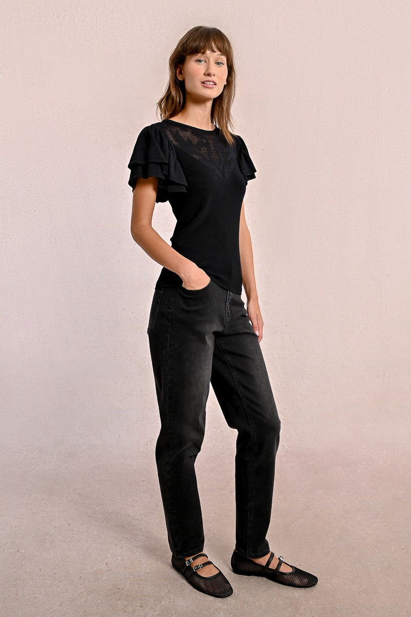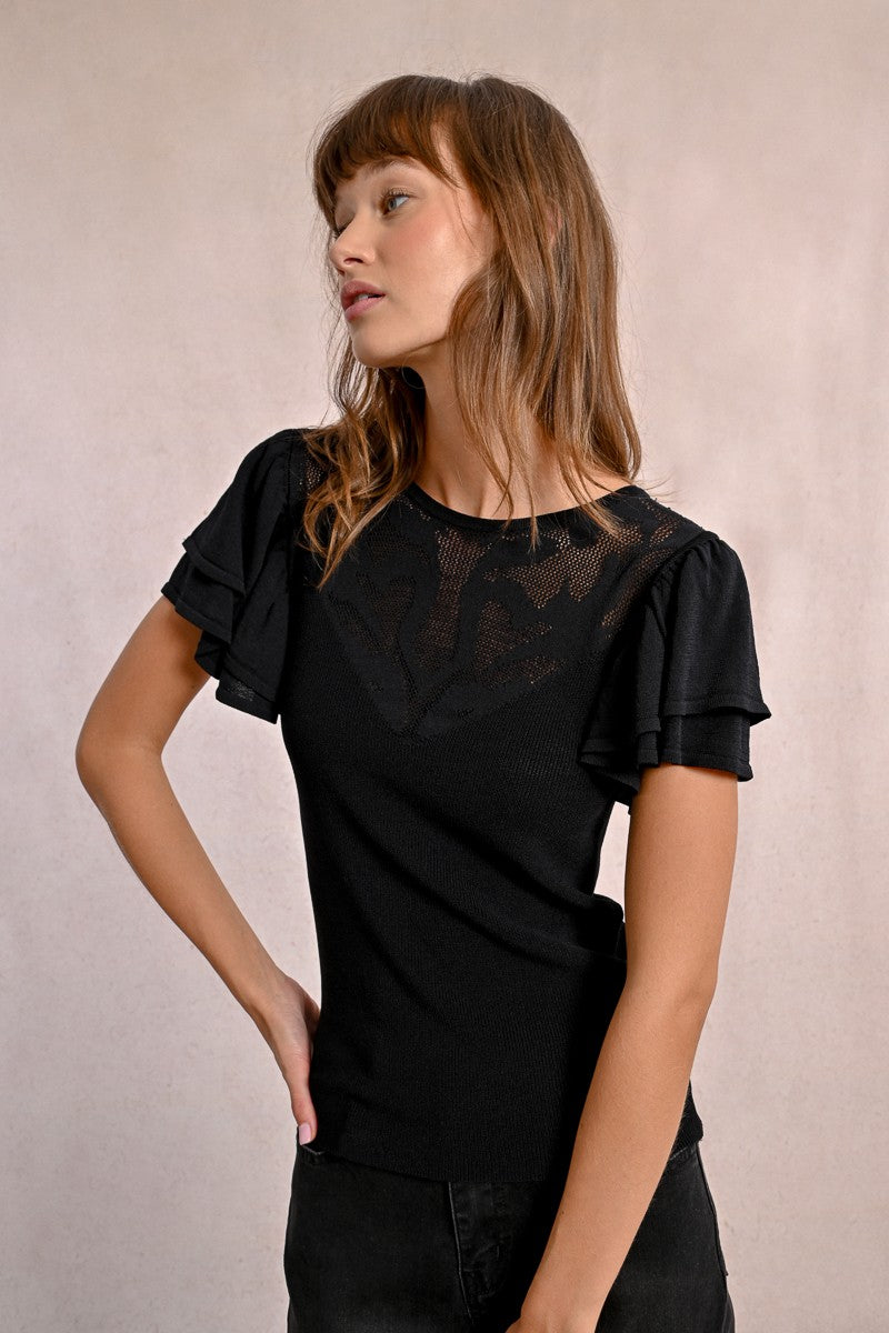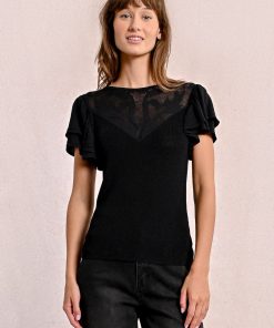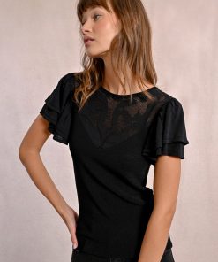-Fitted t-shirt with semi-transparent lace detail
