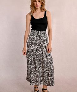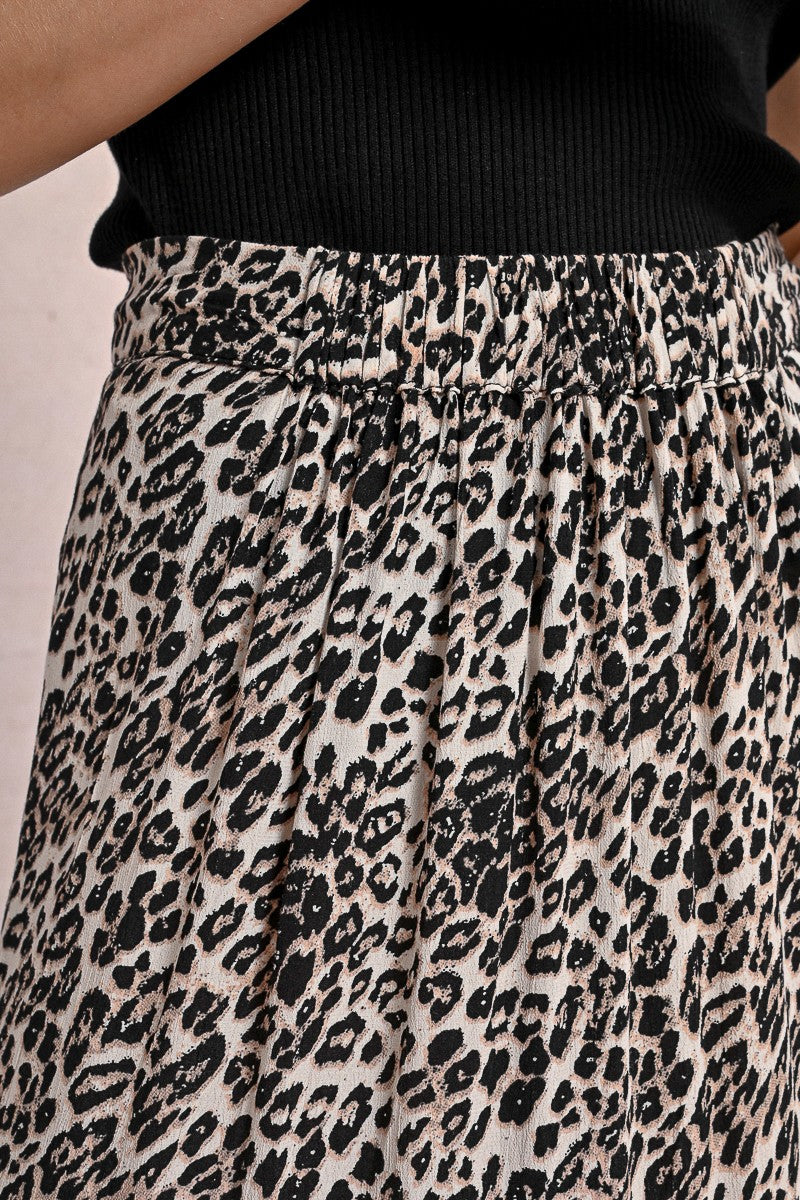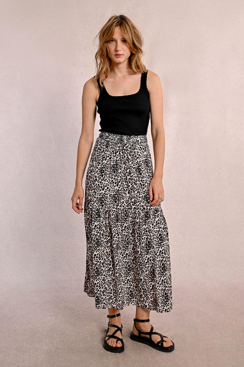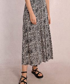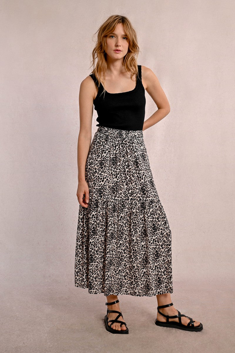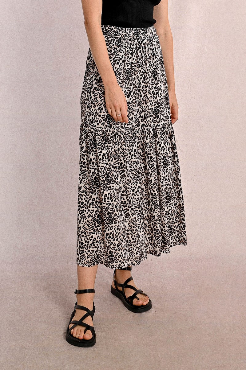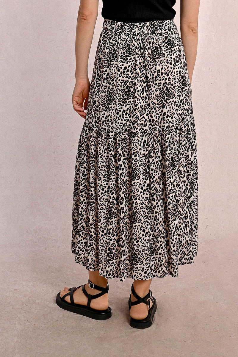 MOLLY BRACKEN Women’s Molly Bracken Long Skirt With Ruffles, Leopard Print | Beige Geeta