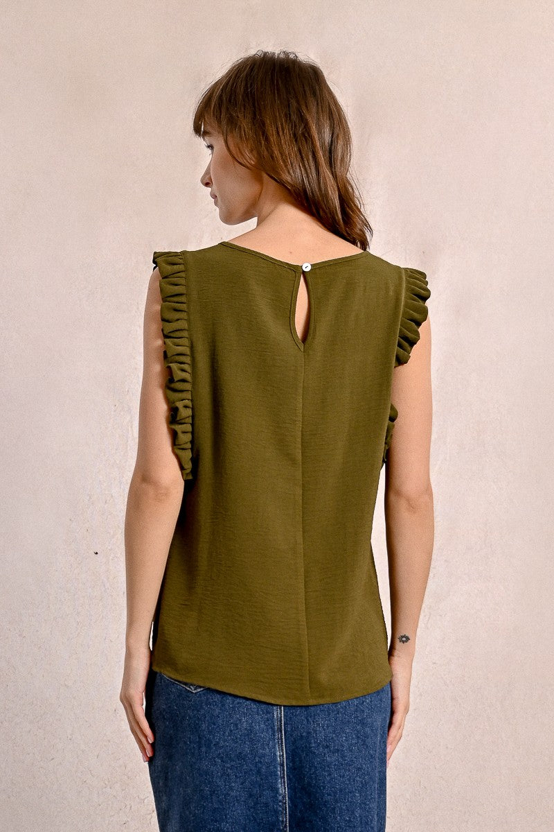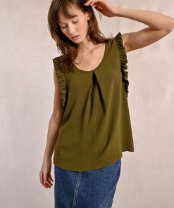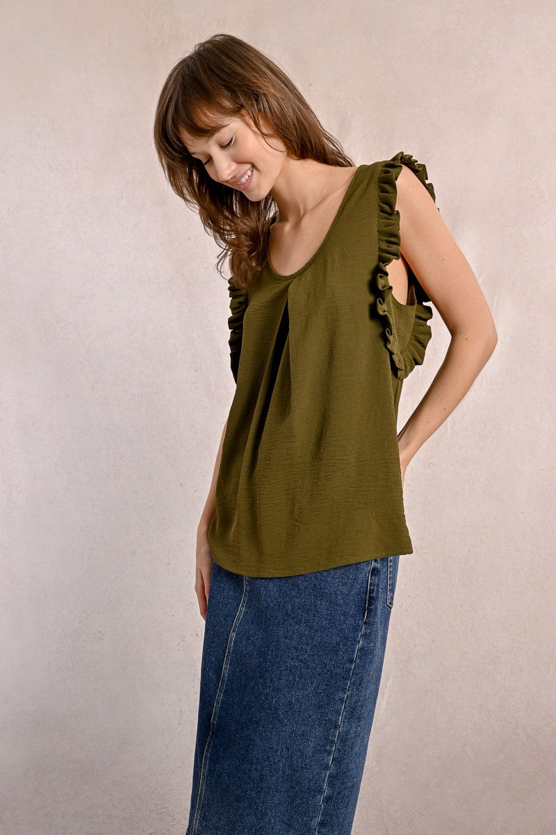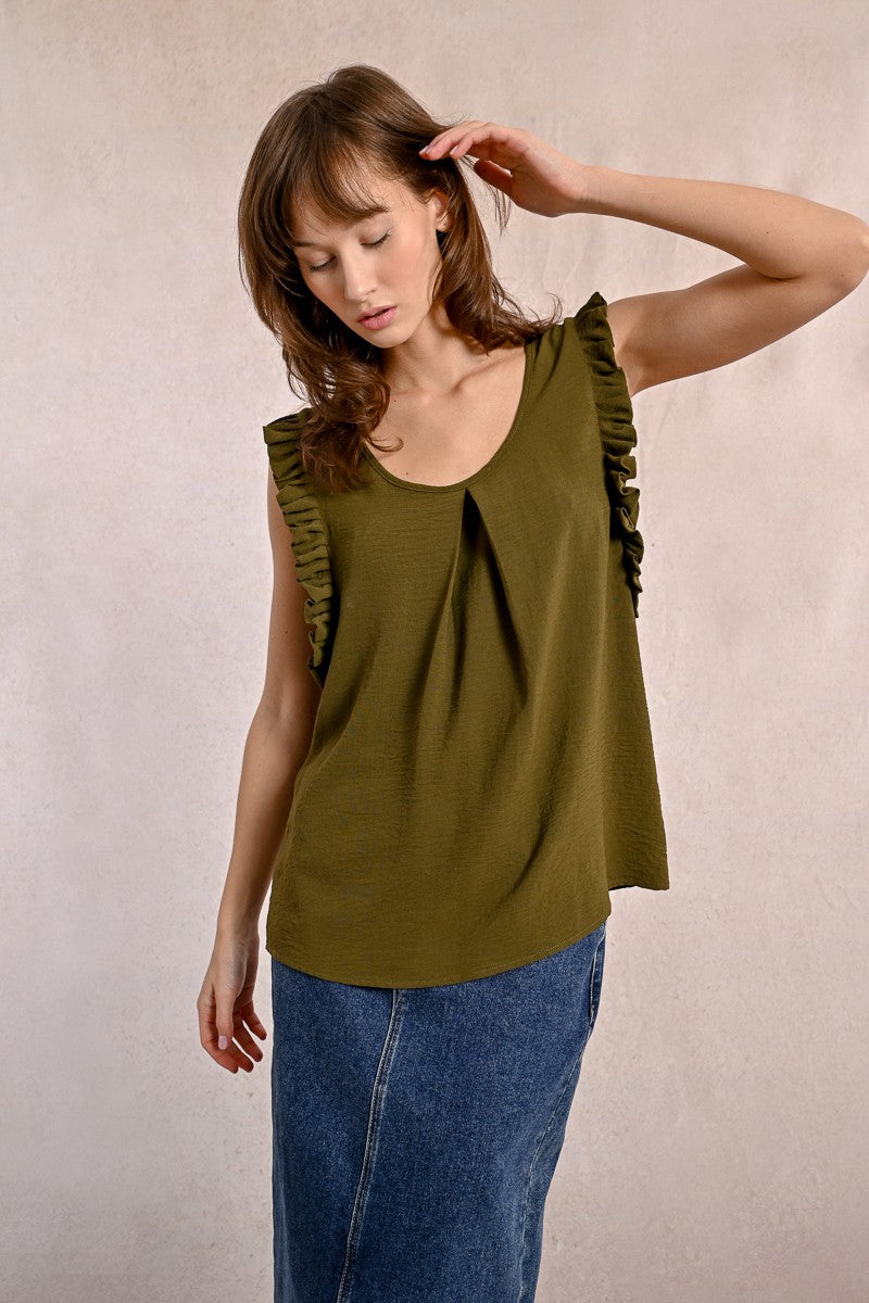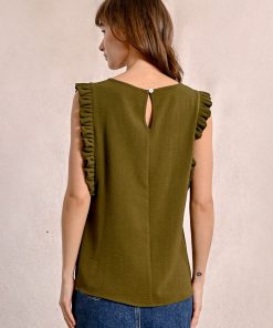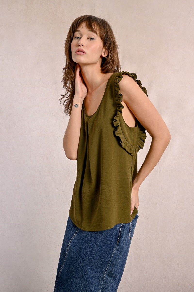 -Armholes enhanced with ruffled bands