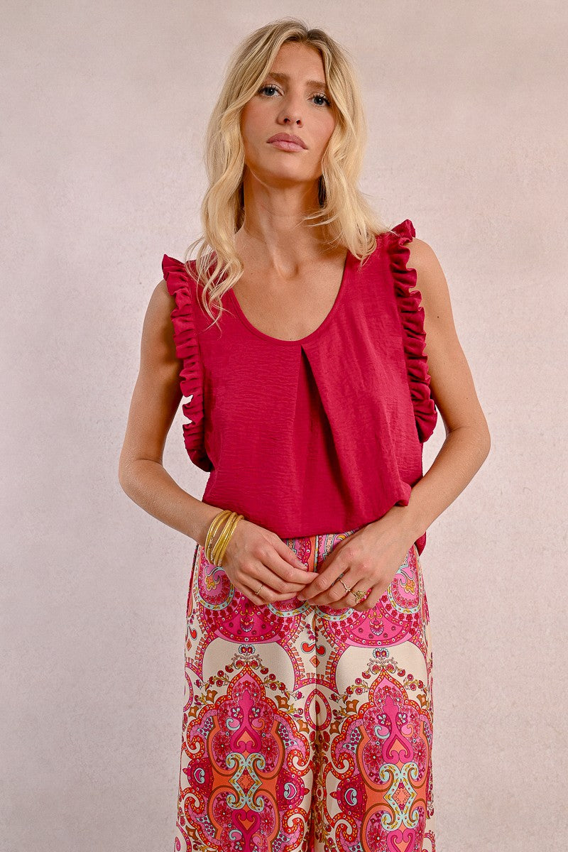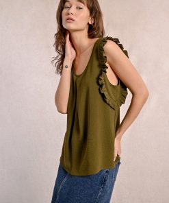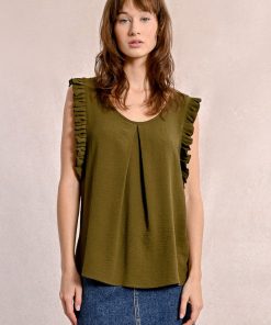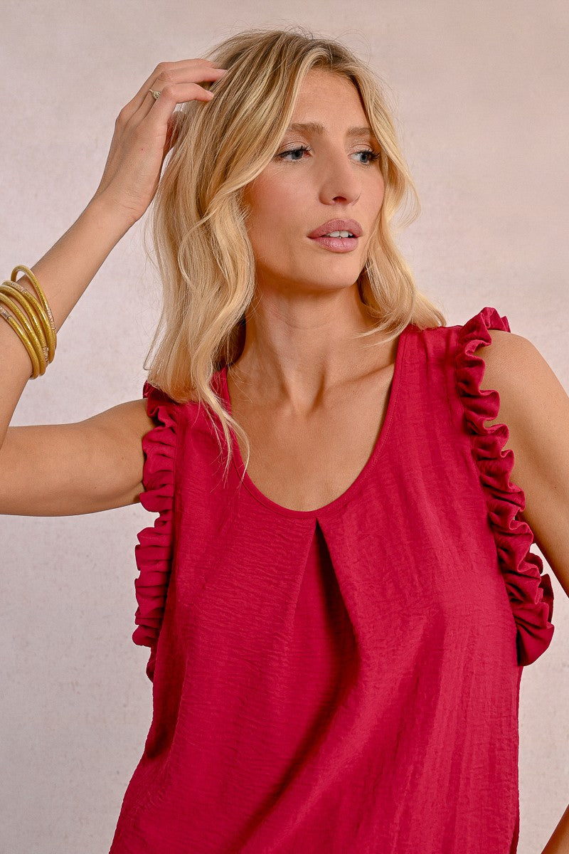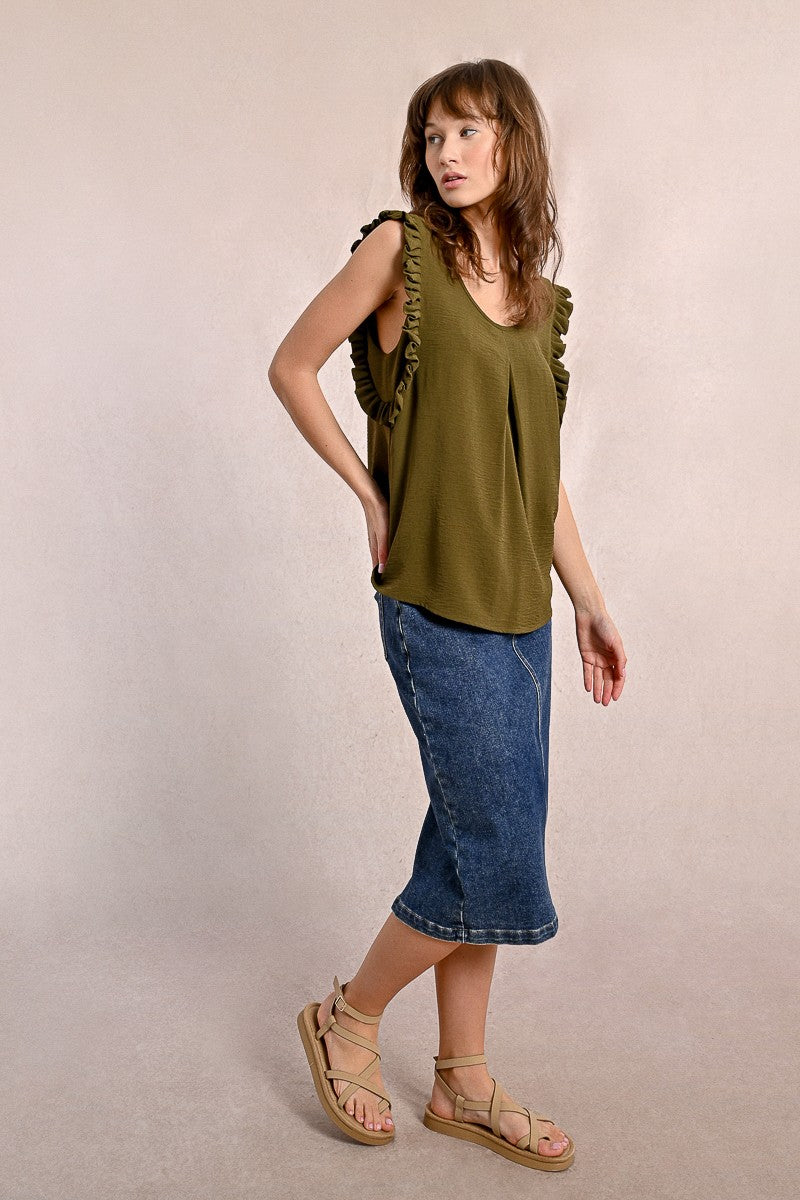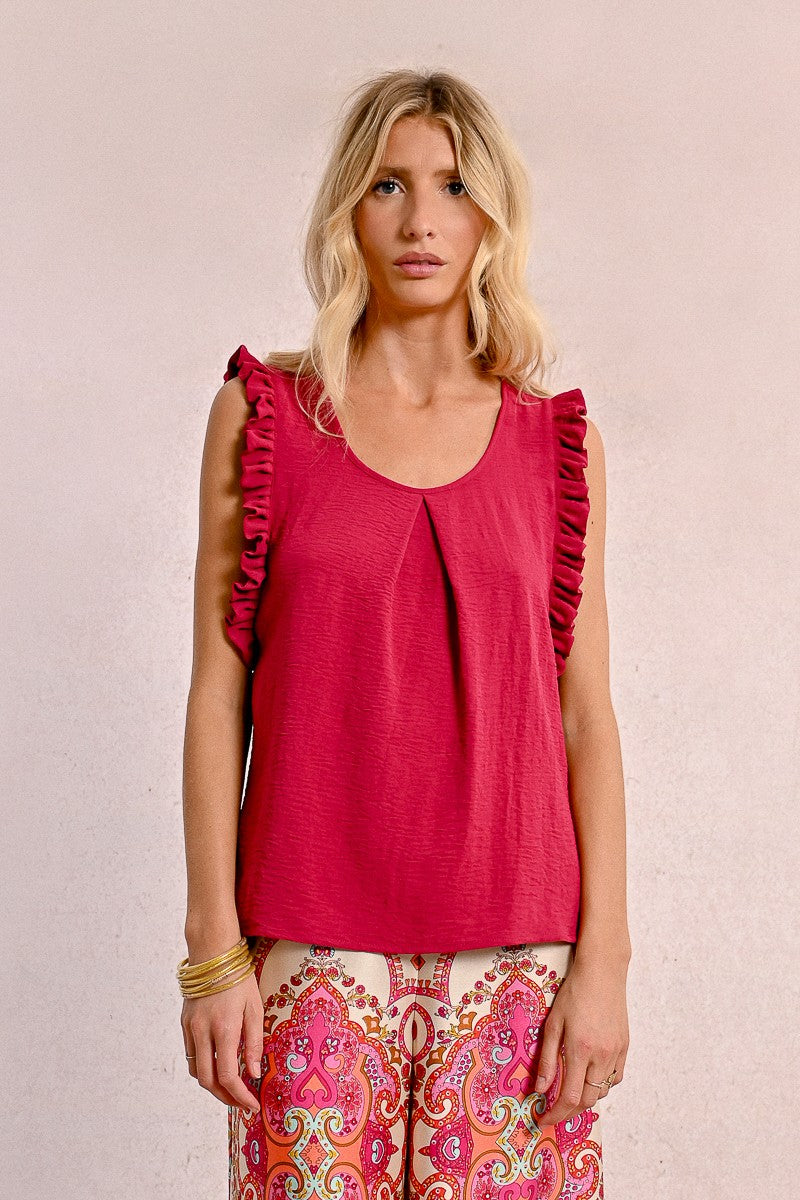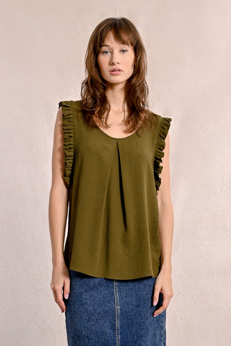 -Armholes enhanced with ruffled bands