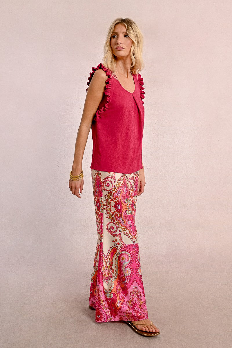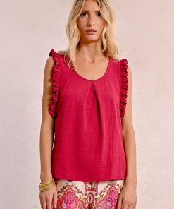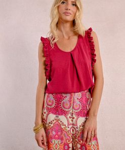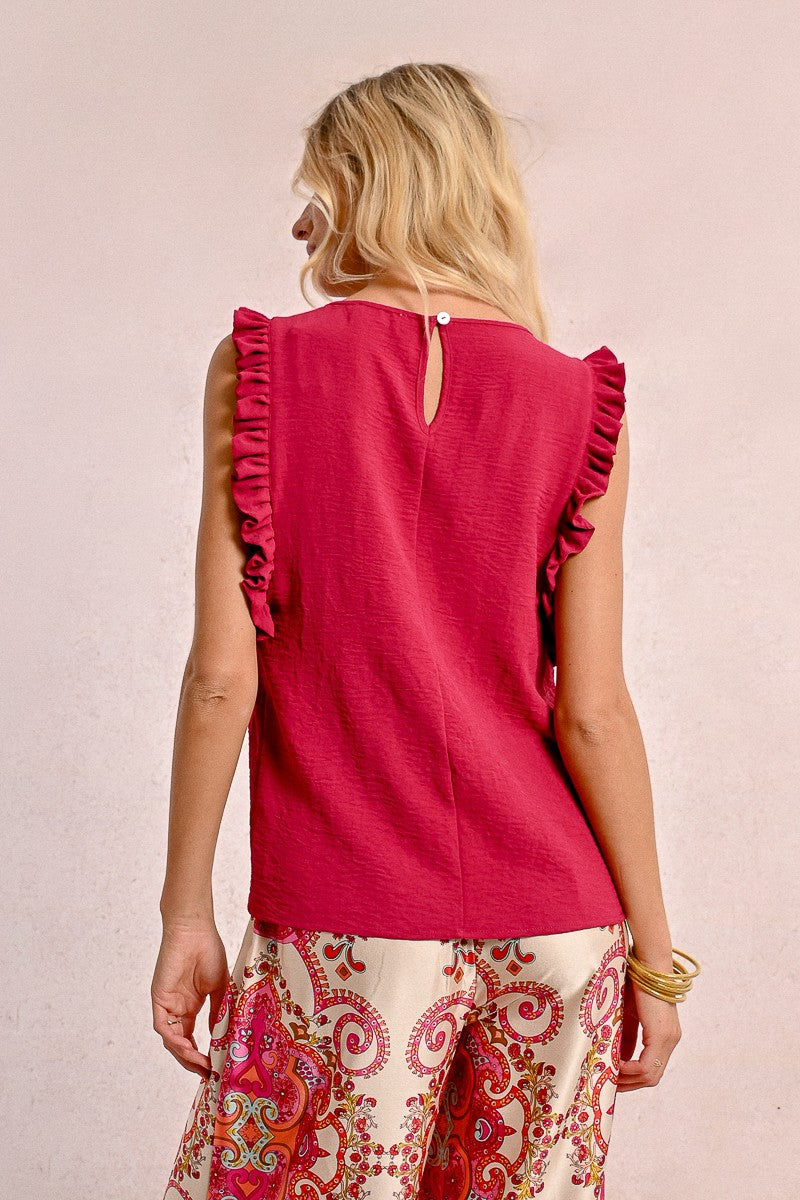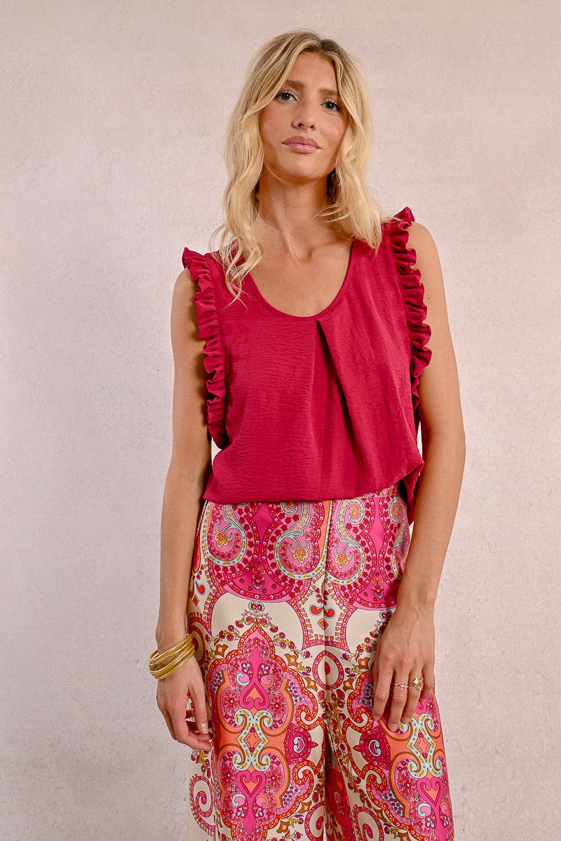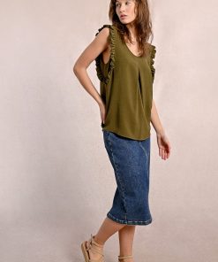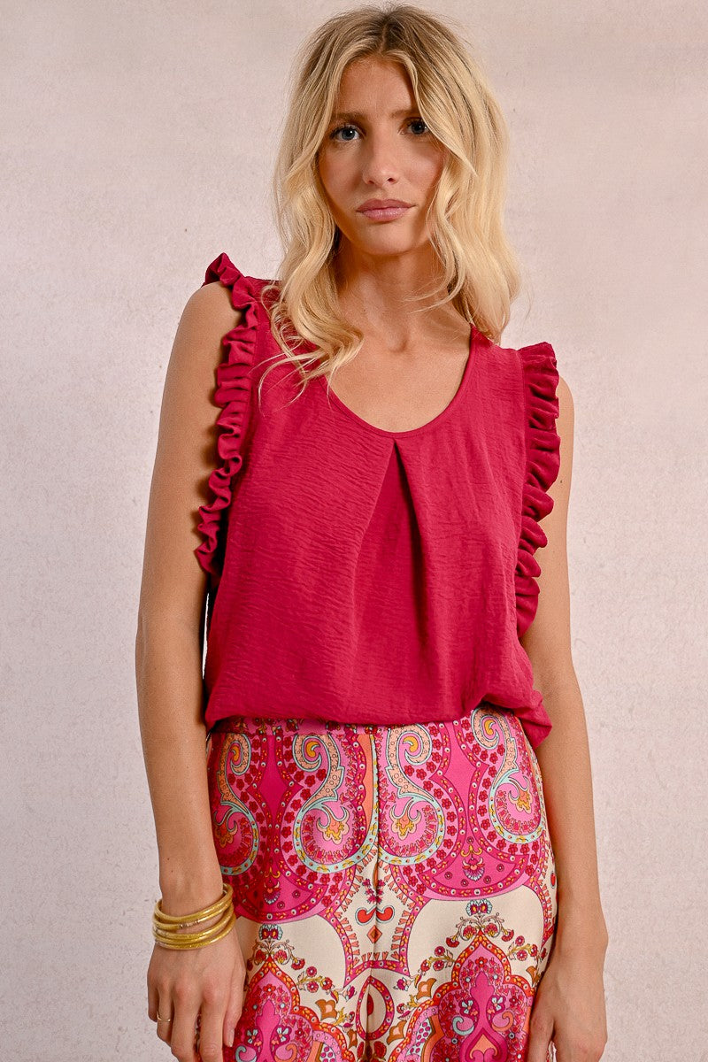 -Armholes enhanced with ruffled bands
